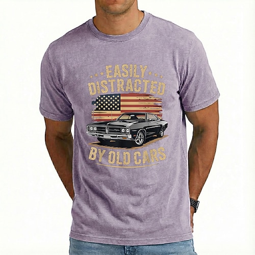regalo divertente per gli amanti delle auto, maglietta facilmente distraibile dalle vecchie auto, bandiera americana, grafica di auto d'epoca, lavata e rovinata, maglietta a maniche corte,