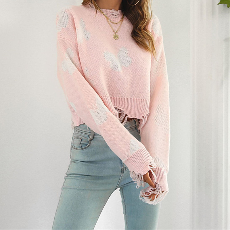 Women's Pullover Casual Butterfly Chunky Crew Neck Knitted Long Sleeve Regular Tops Knit Daily Holiday Going out Black White Fall Winter
