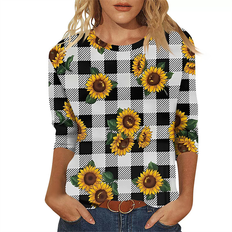 Women's T Shirt Graphic Sunflower Casual Short Sleeve Crew Neck Regular Tops Daily Going out Weekend Print Black White Yellow Orange Fall