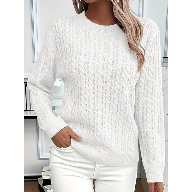 Women's Sweater Casual Soft Pure Color Ribbed Crew Neck Knitted Long Sleeve Regular Tops Knit Outdoor Daily Weekend Black White Fall Winter