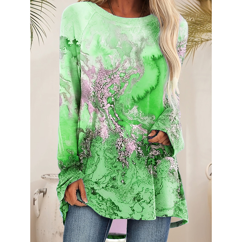 Women's T Shirt Graphic Geometry Vintage Stylish Casual Long Sleeve Crew Neck Long Tops Daily Print Blue Purple Green Fall Winter