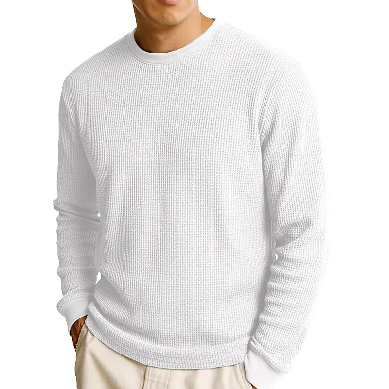 Men's Waffle Shirt T Shirt Tee Top Long Sleeve Shirt Long Sleeve Crew Neck Fall Spring Fall Fall Winter Plain Textured Fashion Designer Basic Knitted Vacation Street Casual Black White Burgundy