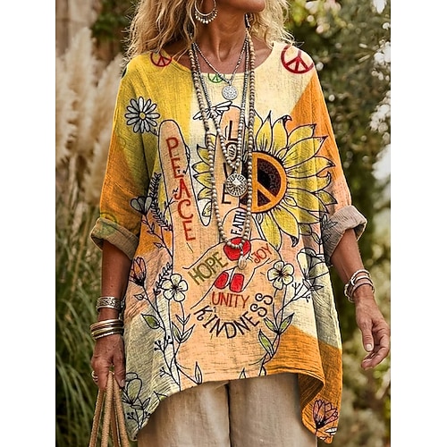 Damen Hemd Bluse Bohemien Vintage Täglich Dreiviertelarm U-Boot-Ausschnitt Normale Oberteile Ausgehen Druck Weiß Gelb Rote Orange Grün Sommer Frühling Herbst