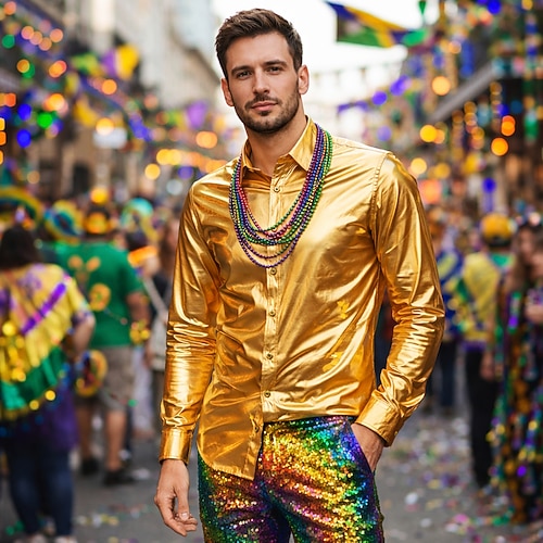 Mardi Gras 2026 Disco 1980s Blouse / Shirt Masquerade Disco Fancy Dress Men's Carnival Costume Masquerade Party / Evening Bachelorette Party Pride Parade Adults' Shirt