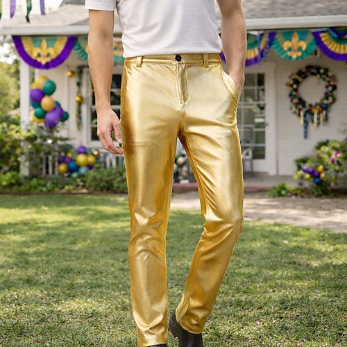 Mardi Gras 2026 Metallic Disco Pants Outfits Suits Blazers Disco Solid Colored Fancy Dress Men's Masquerade Event / Party Pride Parade Pride Month Adults' Costume