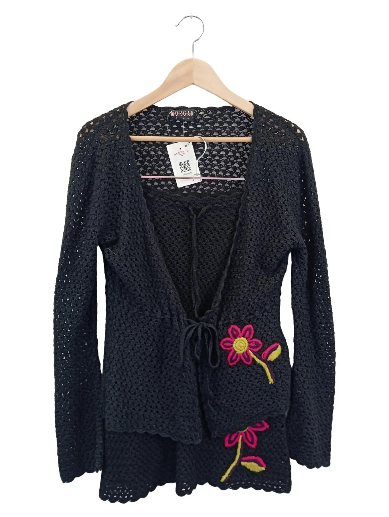 MORGAN Twin Set Größe 38 Schwarz Blumenmuster Damen