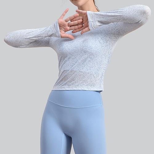 Per donna Magliette da yoga Canotte da allenamento Traspirante Rete Manica Lunga Gli sport Tinta unica Top Per Palestra Atletico Pilates Abbigliamento sportivo