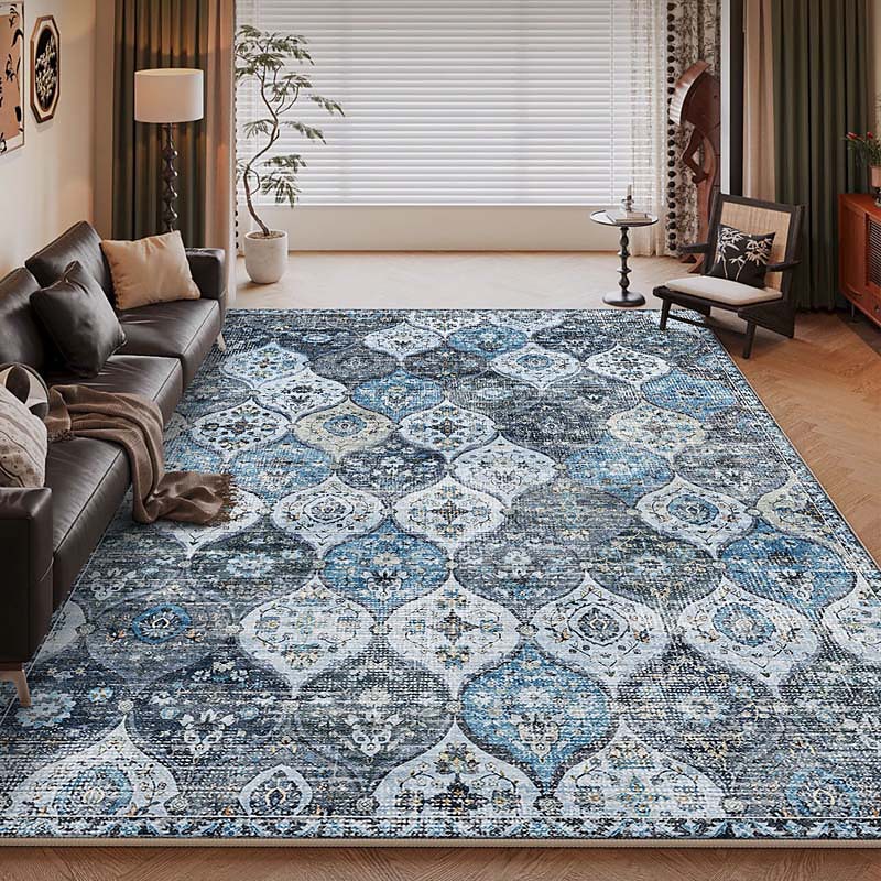 Vintage Persian Area Rug For Living Room And Bedroom Soft Non-Slip Machine Washable Floor Mat Ethnic Style Hand Woven Low Polyester Cotton Blend Bedside Carpet Sofa Cushion Durable Easy Care