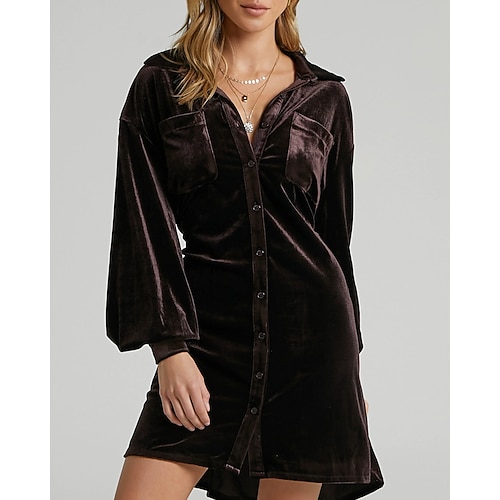 Per donna Abito Midi Abito di Natale Abito in Velluto Abito da Cocktail Moda Classico Moderno All'aperto Festa serale Ferie Vestibilità regolare Semplice Manica Lunga Colletto a Camicia Viola Marrone