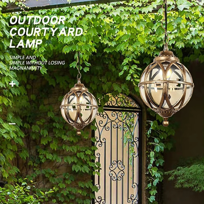 Outdoor Pendant Lights, Outside Hanging Lamp Waterproof Porch Black Metal Chandelier with Clear Glass Globe in Iron Cage Frame, Exterior Lantern for Entryway, Patio Interesting Life