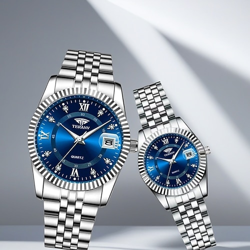 Orologio da coppia 2 pezzi, regali di San Valentino per uomo e donna, orologio di lusso affascinante, decorazione in strass, funzione calendario, display con luce notturna, tempo libero alla moda, i