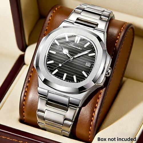un originale orologio da polso sportivo da uomo al quarzo con cinturino in lega in stile business, con resistenza all'acqua IPX7, display luminoso per data e giorno, scatola