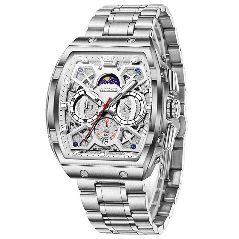 The New Olevs Barrel-Shaped Men'S Business Quartz Watch Luminous Chronograph Calendar Multi-Functional Men'S Casual And Fashionable Quartz Watch Waterproof Sports Wristwatch