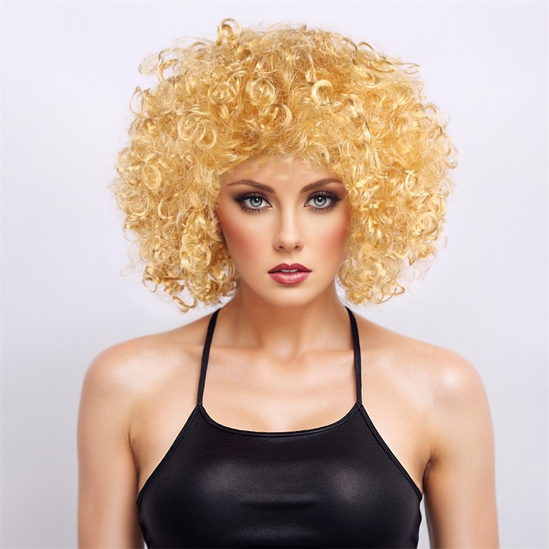 Wig for Women Blonde Curly Bad Wig 80s 70s Movie Wig for Party Daily Halloween Wigs