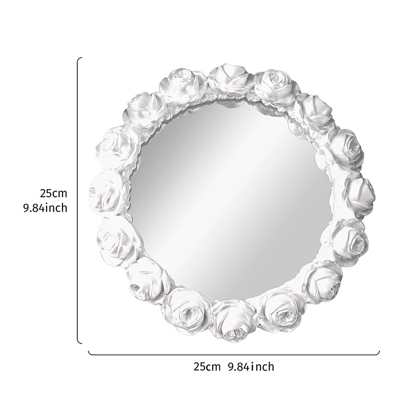 1PC Simple European Rose Garron-shaped Mirror Decorative Tray Resin Handicraft High-definition Glass Mirror Inlay Suitable for Shooting Props Beauty and Cosmetic Storage and Display