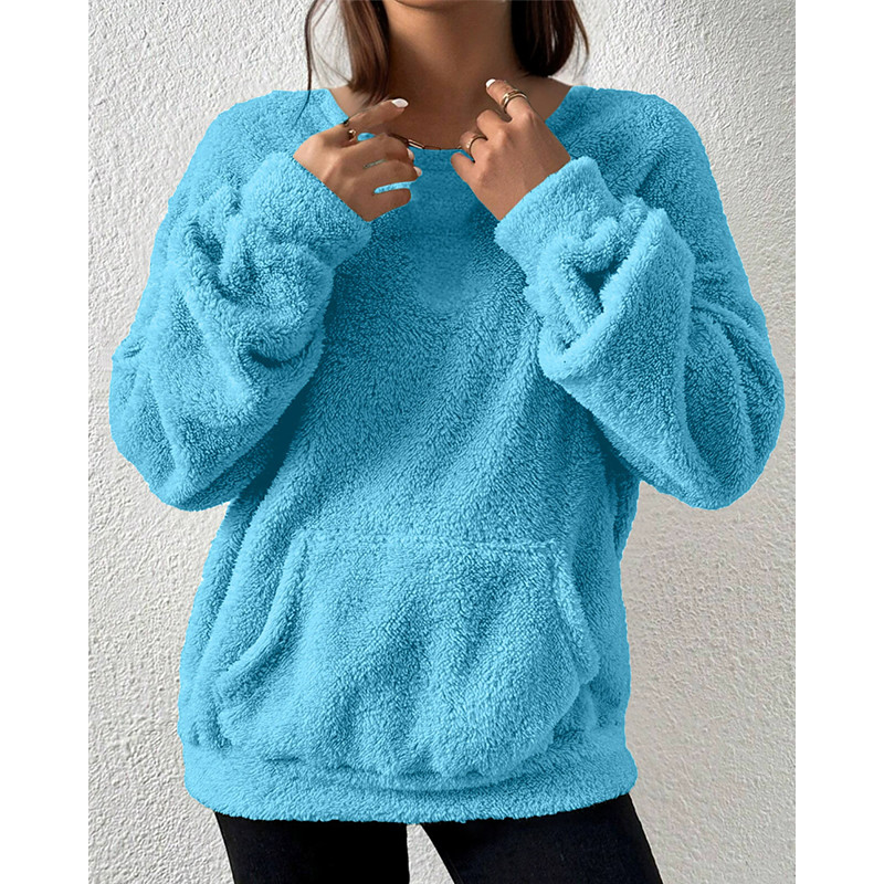 Women's Hoodies Plain Streetwear Casual Long Sleeve Crew Neck Regular Tops Street Holiday Pocket Blue Fall Winter