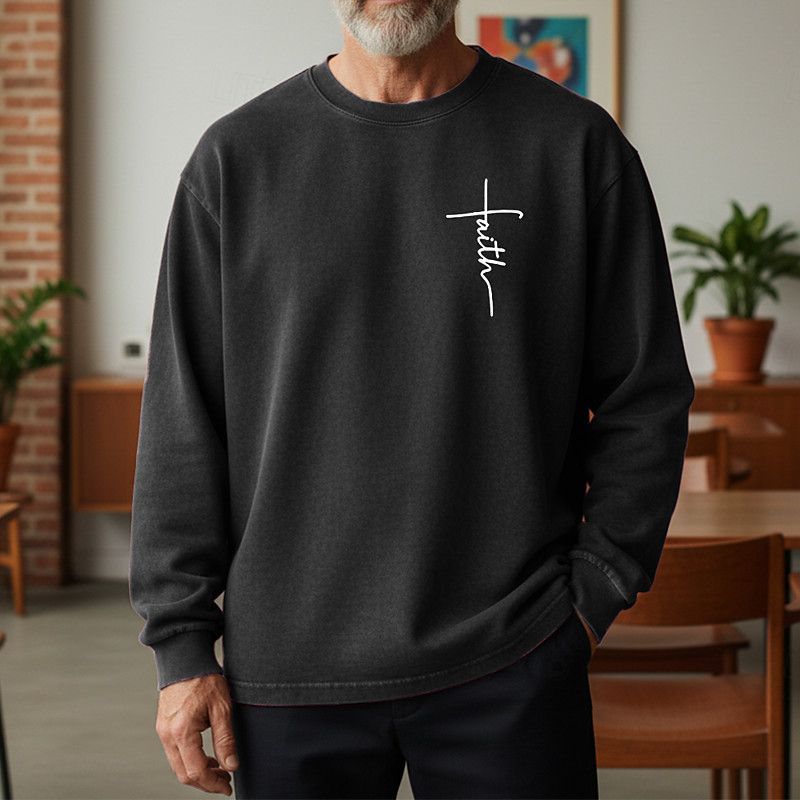 Men's Sweatshirt Distressed Hoodie Apricot Black Pink Army Green Brown Crew Neck Letter Faith Print Daily Holiday Going out 100% Cotton Vintage Retro Casual Fall Winter Clothing Apparel Hoodies