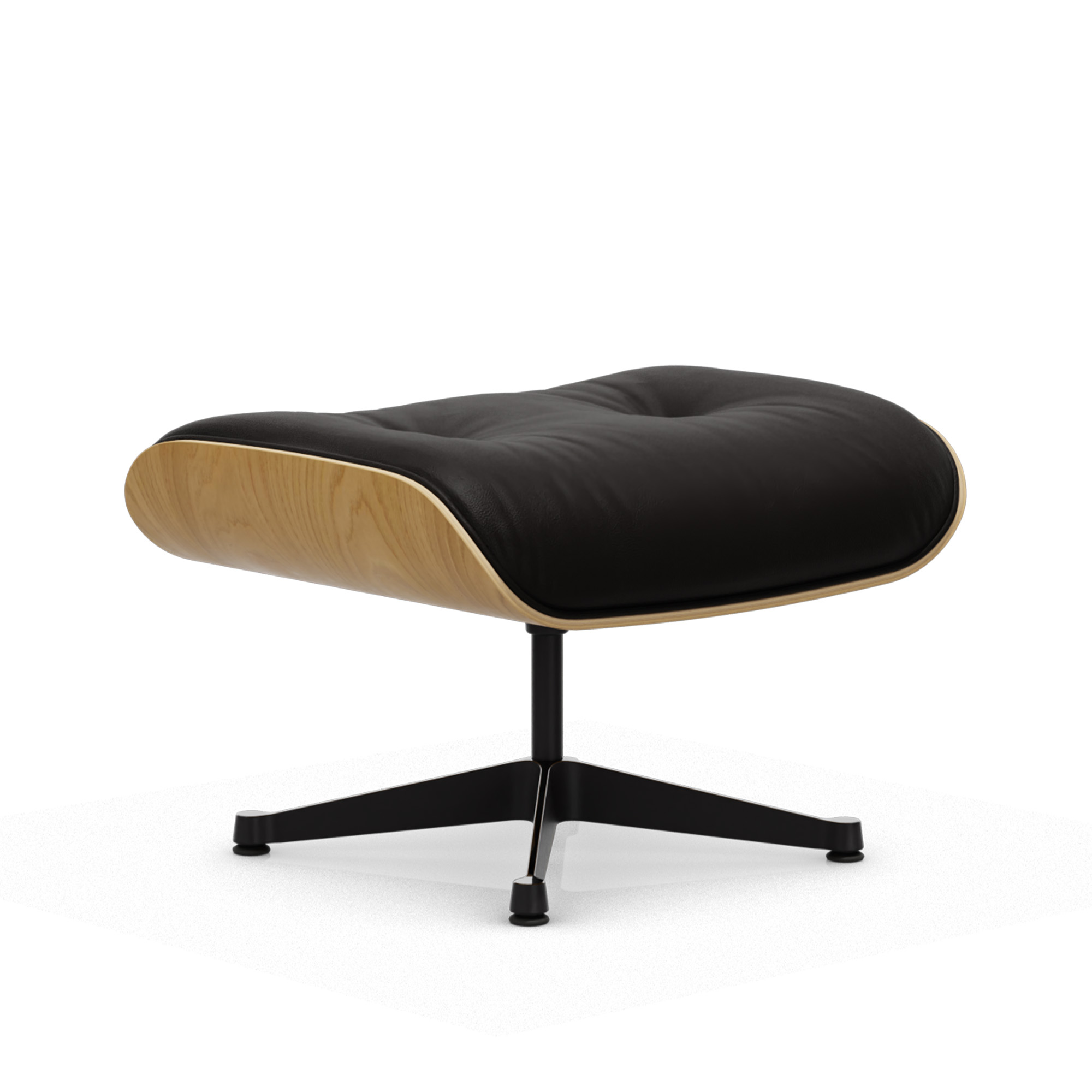 Vitra - Eames Lounge Ottoman Natural Walnut Leather Natural Nero 66 Deep Black - Fotpallar - Charles & Ray Eames - Läder/Metall/Trä