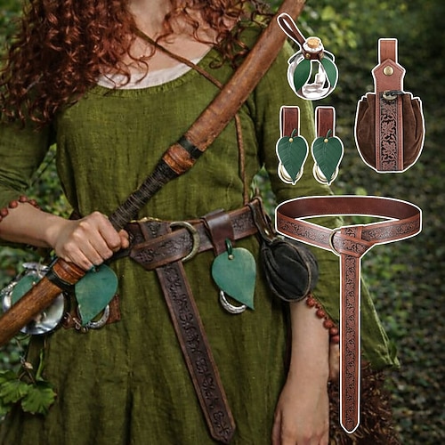Set Retrò Vintage Medievale Rinascimento Vestito Armatura Cintura in Vita con accessori Lunghe Elfo Ranger Costume Per donna Halloween Carnevale Mascherata Fiera Rinascimentale Festa a tema retrò
