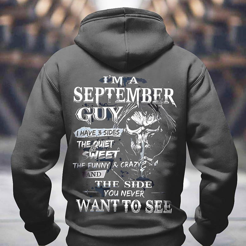 Mens September Guy Hoodie - I Have 3 Sides: Quiet, Sweet, Funny, Crazy The Side You Never Want To See Graphic Long Sleeve