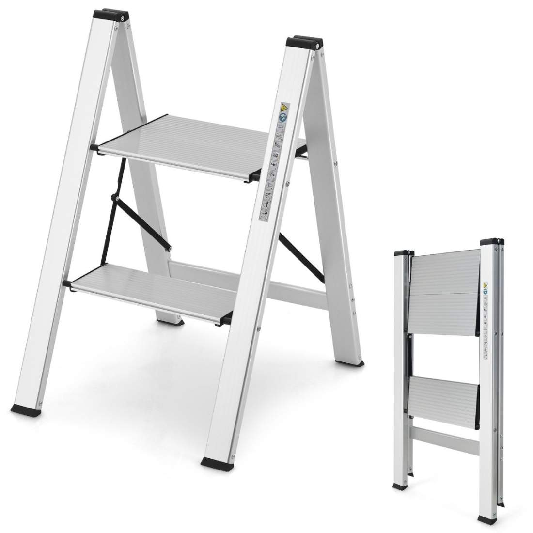 Tikkaat 2-portaiset alumiiniset taittotikkaat 150 kg asti hopeaa