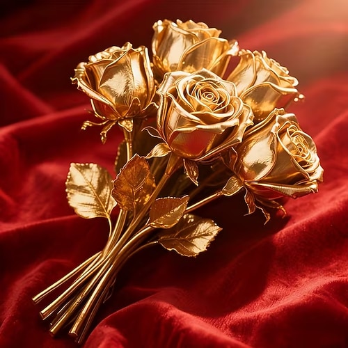 6 fiori artificiali di rosa dorata per San Valentino – bouquet di rose finte realistiche per decorazioni per la casa, ufficio, soggiorno, feste, regali di compleanno, festa della mamma,