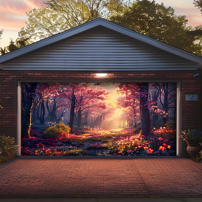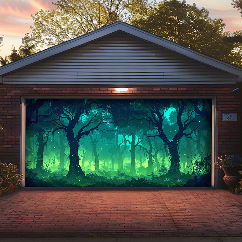Garage Door Cover Large Hanging Backdrop Forest Vintage 3D Fantasy Party Outdoor Shooting Backgrounds Front Door Home Decor