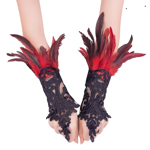 Accessori Samba del Carnevale 2026 Rio Carnevale Guanti in Pizzo di Piume Gotici per Donne Lunghi Guanti Senza Dita in Rete con Piume Naturali Costume per Performance al Festival del Brasile