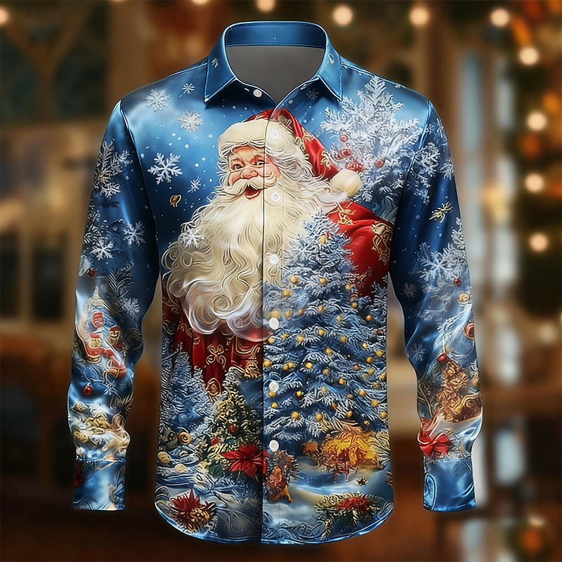 Christmas Men's Santa Claus Christmas Tree Snowflake Shirt Satin Shirt Dress Shirt Long Sleeve Fashion Casual Outdoor Party Holiday Spring Fall Turndown 3D Print Button Up Shirts Blue 1# Red Blue