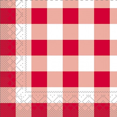 Papstar 20 Servietten, 3-lagig 1/4-Falz 25 cm x 25 cm rot "Vichy Karo"