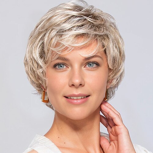 mittellange blonde lockige Perücken für weiße Frauen, kurze, gestufte, gewellte Bob-Perücken, blonde Perücken aus Kunsthaar für den täglichen Party-Cosplay
