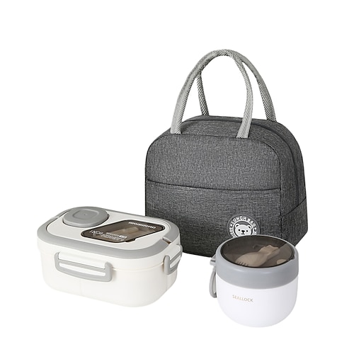 3-teiliges tragbares Lunchset: Isoliertasche, Lunchbox und Haferbecher – faltbare, mit Aluminiumfolie isolierte Handtasche mit PP-Behälter, geeignet für Schule, Picknick und den Schulweg