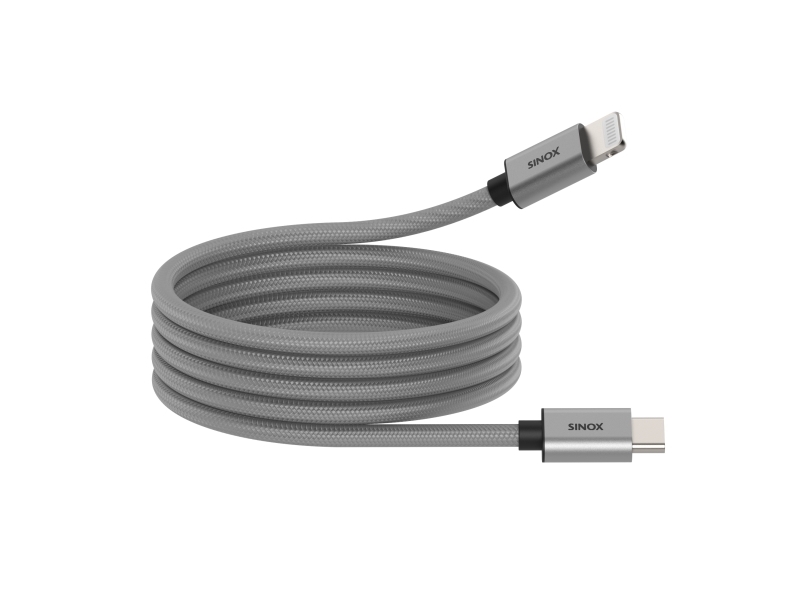 Sinox PRO USB C zu Lightning magnetisches Kabel. 1m. grau