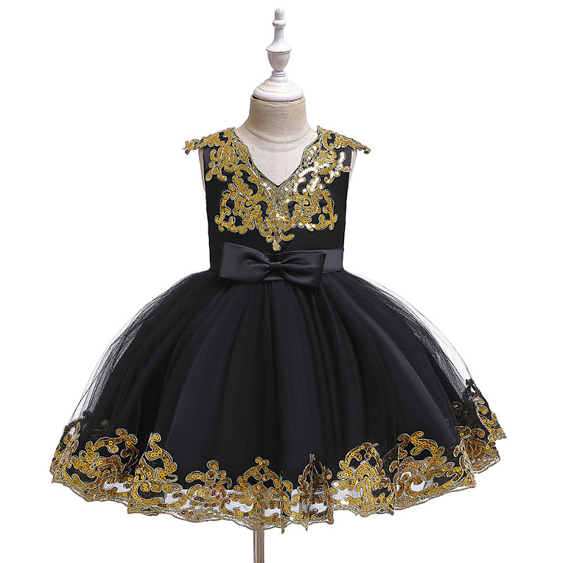 Flower Girl Dress Girls' Formal Dress Wedding Attire Party Wedding Formal Fashion Lolita Princess Sequins Patchwork Floral Sleeveless V Neck Blue Black 4 years