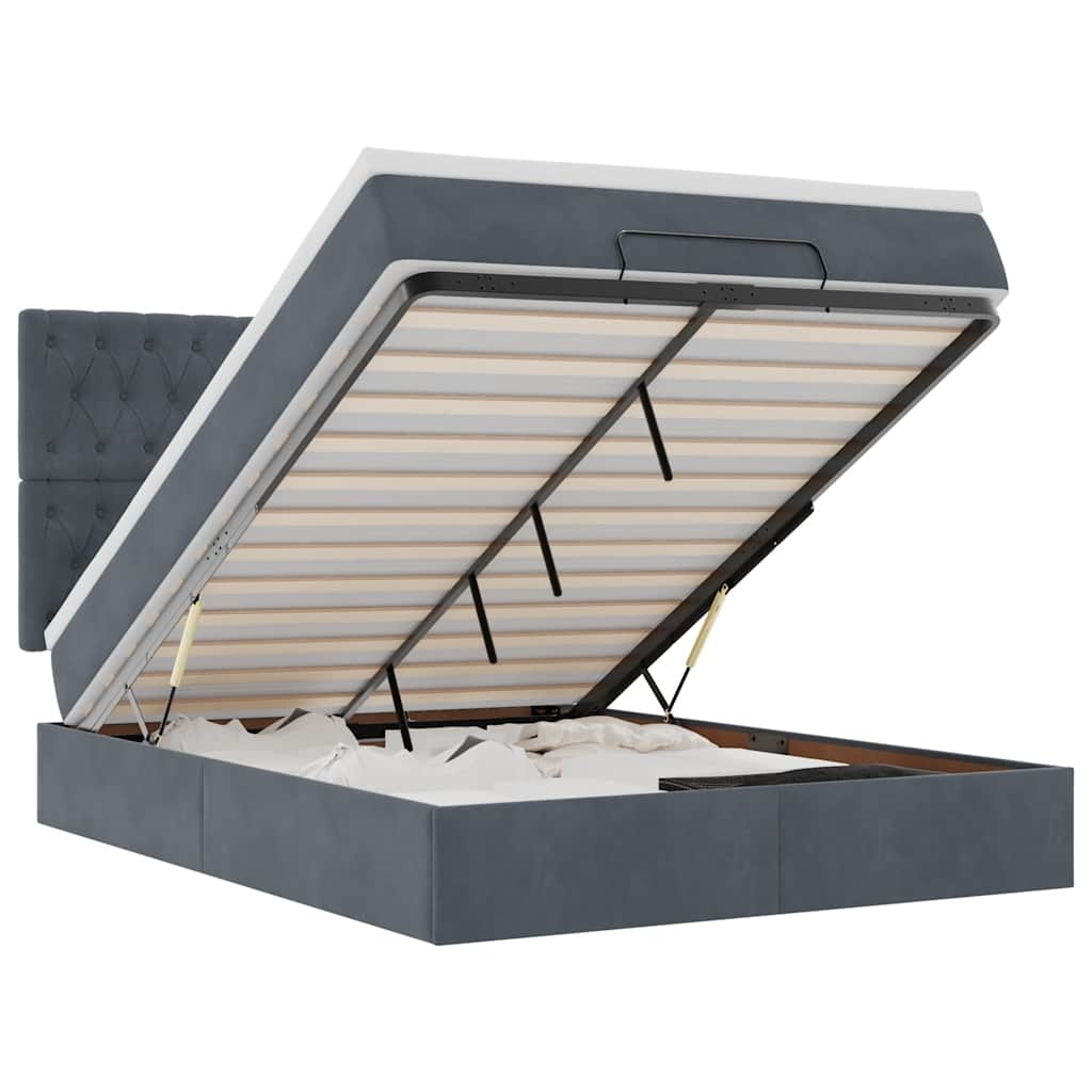 vidaXL Ottoman-Bett mit Matratzen & LEDs Dunkelgrau 140x190 cm Samt
