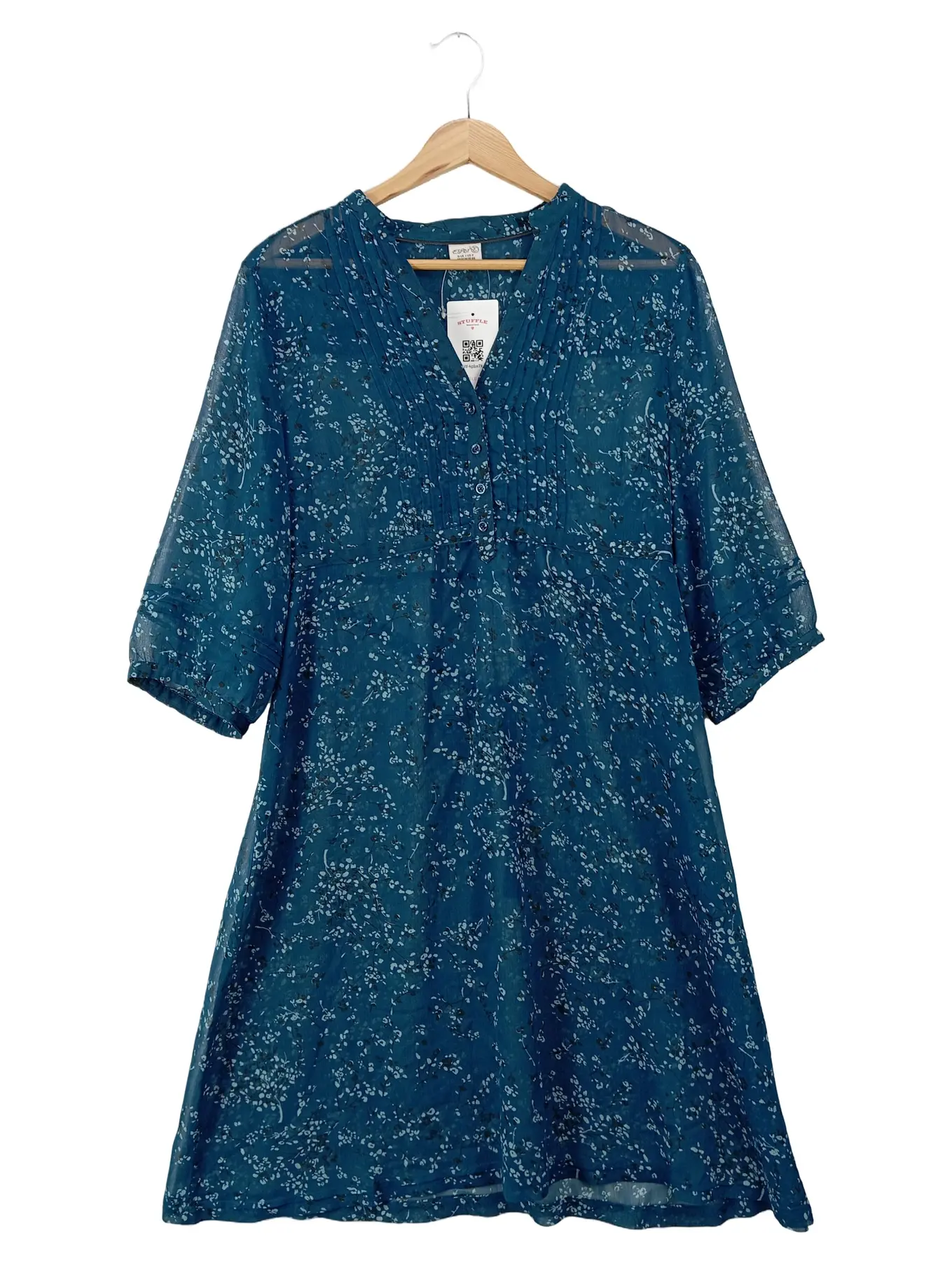 ESPRIT Damenkleid blau gepunktet Größe 42 Midi A-Linie