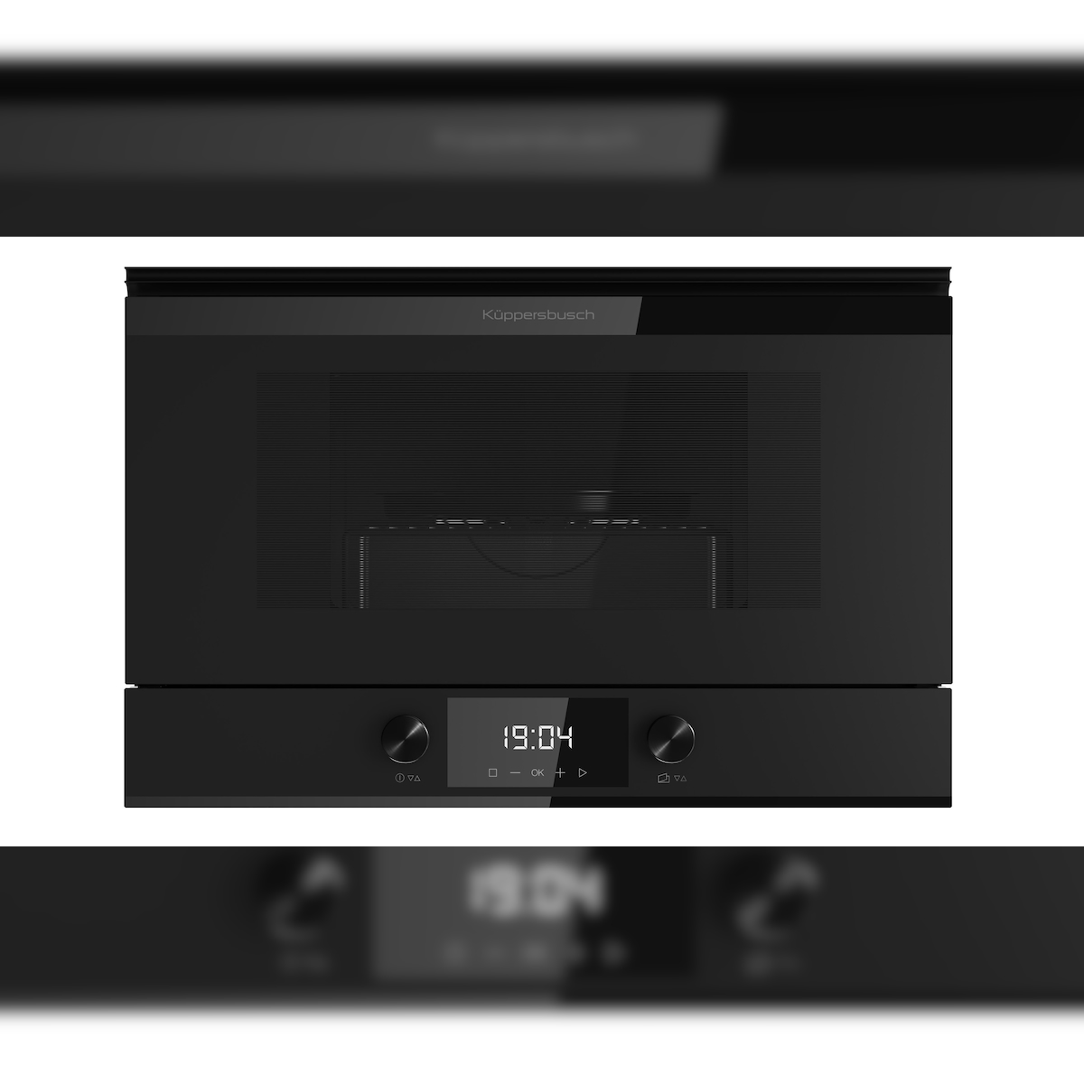 Küppersbusch MattBlack Design Linie. Kompakte Mikrowelle mit 6 Funktionen und Grill - 38 cm Nischenhöhe und Türanschlag rechts MR6330.0KSM