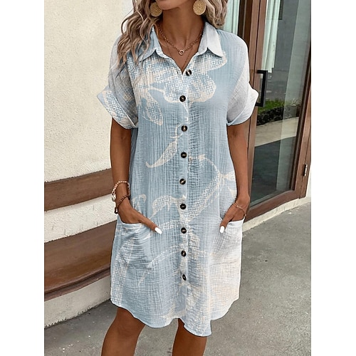Per donna Mini Abito Abito Camicia Vestito Casual Abito Stampato Moda Moderno Quotidiano Spiaggia Weekend Vestibilità regolare Floreale Manica Corta Colletto a Camicia Blu Estate Primavera Autunno
