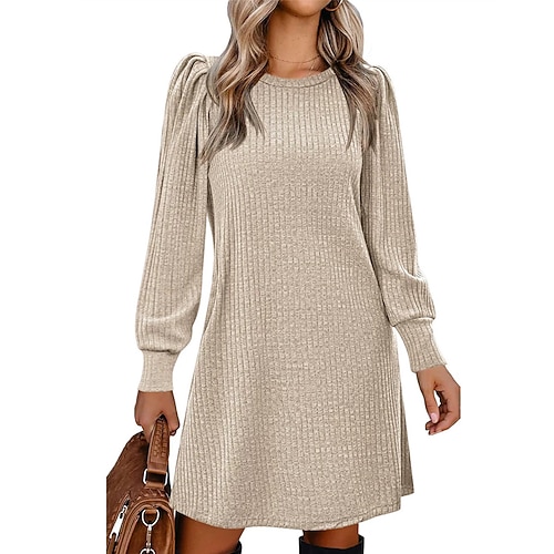 Per donna Mini Abito Vestito Casual Elegante Moda Moderno All'aperto Quotidiano Uscire Vestibilità regolare Semplice Manica Lunga Girocollo Nero Rosa Rosso Blu Primavera Autunno