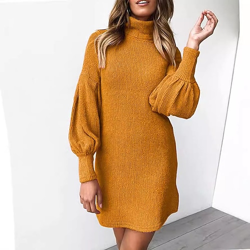 Per donna Mini Abito Abito nero Vestito Casual Moda Moderno Quotidiano Weekend Vestibilità regolare Semplice Manica Lunga Dolcevita Nero Giallo Rosa Grigio Primavera Autunno