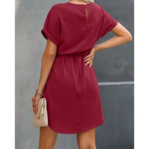 Per donna Mini abito Abito casual Mini abito Abito linea A Essenziale Compleanno Da mare Ufficio Informale Morbido Banda Percalle Manica corta Girocollo Rosa Azzurro cielo Verde Cachi Estate Primavera