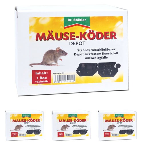 Mäuseköder-Depot mit Schlagfalle für Haus und Garten: 4 Stück