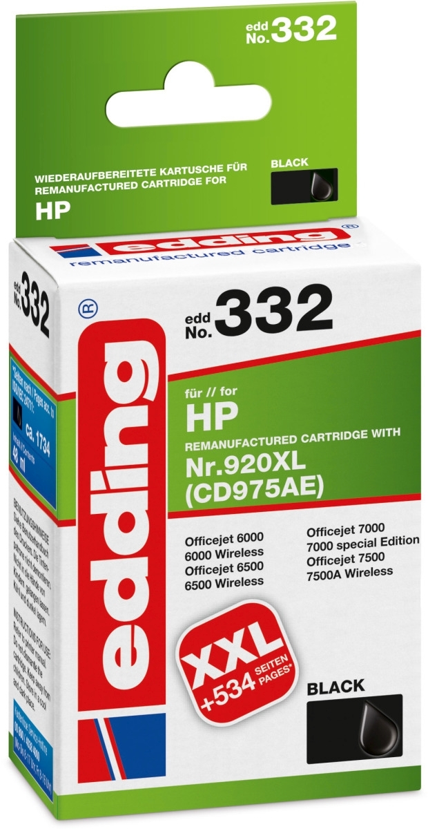 edding Tintenpatrone kompatibel mit HP 920XL black Packung mit 12 Stück
