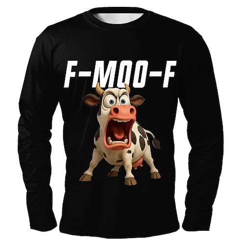 Herren Lustiges F-MOO-F Kuh Wortspiel Langarm Grafik T-Shirt in Olivgrün