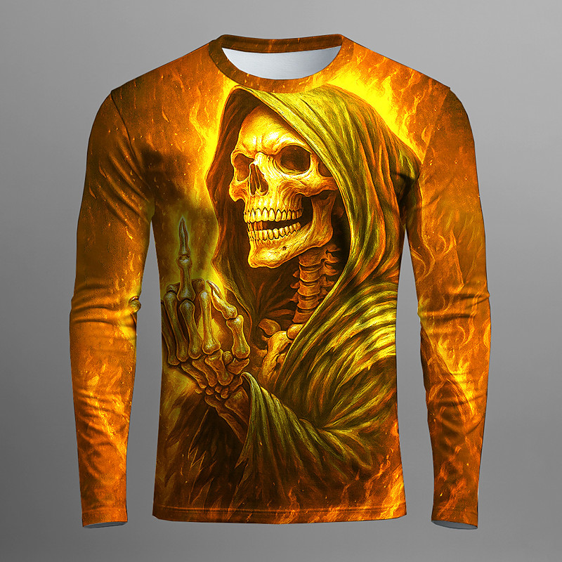 Men's Grim Reaper Skeleton T Shirt Long Sleeve T shirt 3D Print Crew Neck Shirt Fashion Exaggerated Street Casual Daily Black Yellow Blue Summer Spring Fall Clothing Apparel S M L XL XXL XXXL
