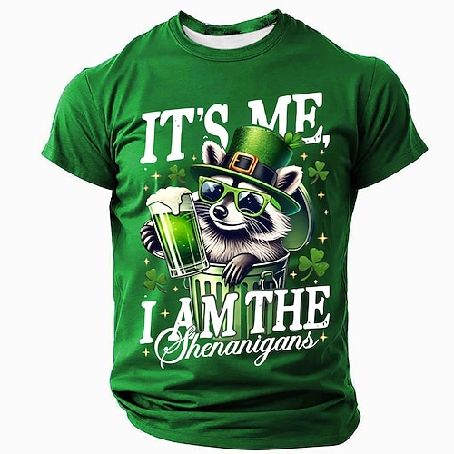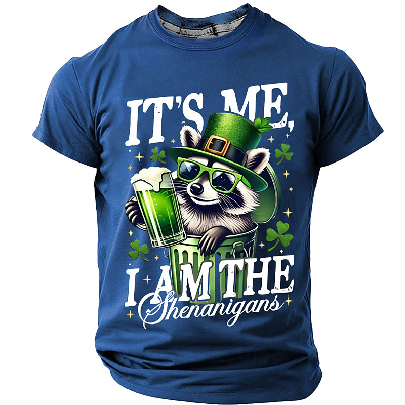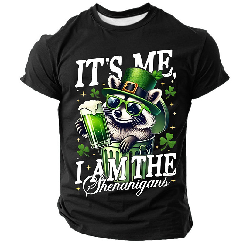 St Patricks Day Mens T Shirt Its Me I Am The Shenanigans Funny Raccoon Leprechaun Hat Green Beer Shamrock Graphic Short Sleeve Tee Humorous Trash Panda Holiday Top Clothing Apparel S M L XL XXL X