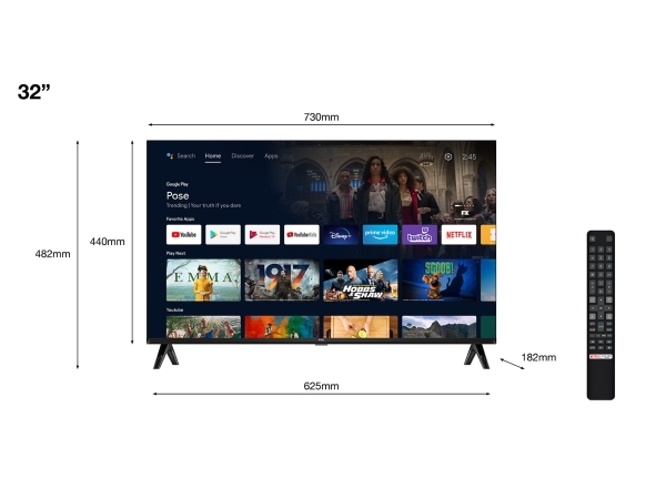 TCL S54 32S5409A, 81,3 cm (32), 1366 x 768 pixel, LED, Smart TV, Wi-Fi, Sort