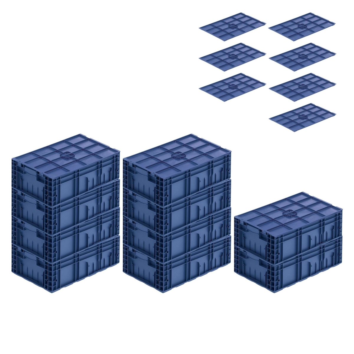 PROREGAL 10x VDA KLT Kleinladungsträger mit Verbundboden & Auflagedeckel | HxBxT 21,3x40x60cm | 34,9 Liter | KLT
