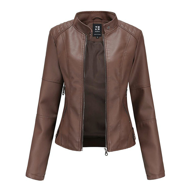 Women's Faux Leather Jacket Biker Jacket Waterproof Windproof Zipper Pocket Modern Outdoor Casual Street Style Plain Christmas Outdoor Street Daily Wear Zipper Stand Collar Regular Fit Long Sleeve