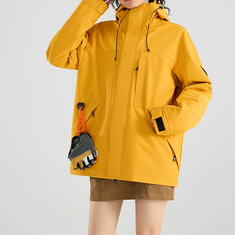 Women's hooded jacket with zipper pockets hood with multiple pockets waterproof fabric women's skin jacket